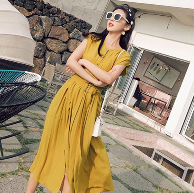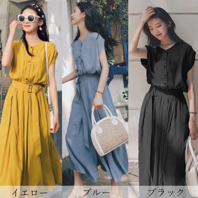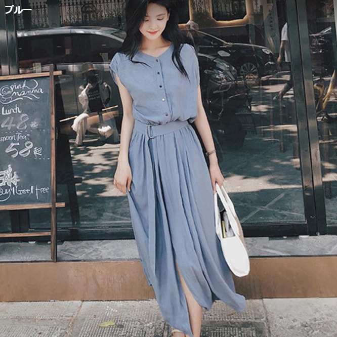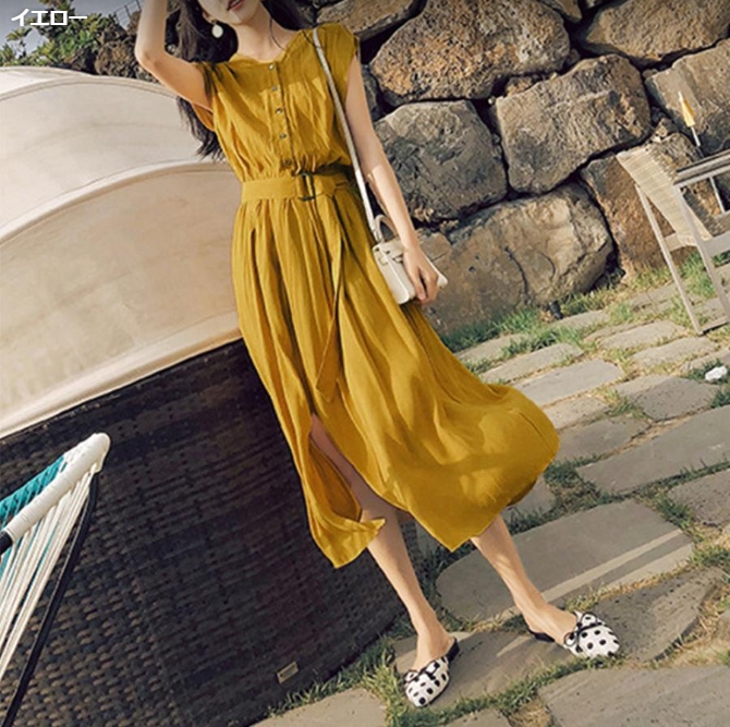 シャツワンピース レディース ベルト付き ロングワンピース ノースリーブ 着やせ シフォン ワンピース 体型カバー
