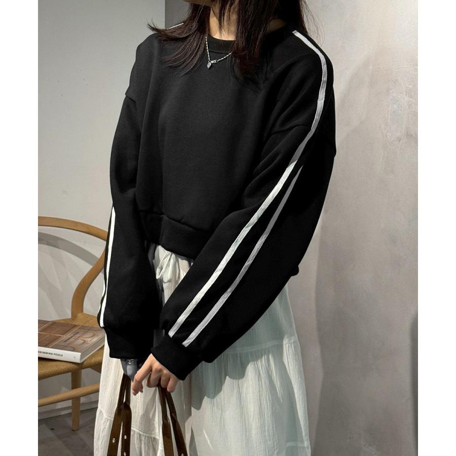袖ラインスウェット ゆったり ショート丈プルオーバー おしゃれ 暖かい 体型カバー 大人カジュアル 厚手スポーツトップス