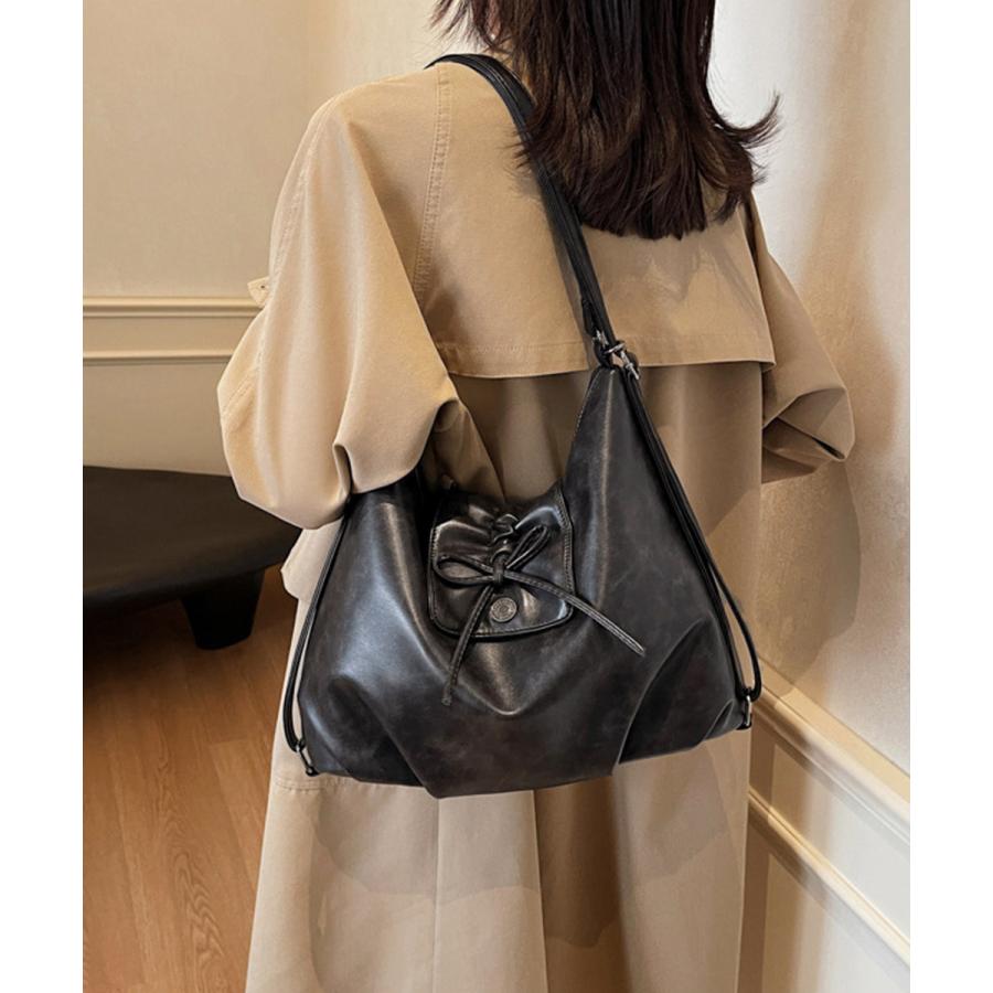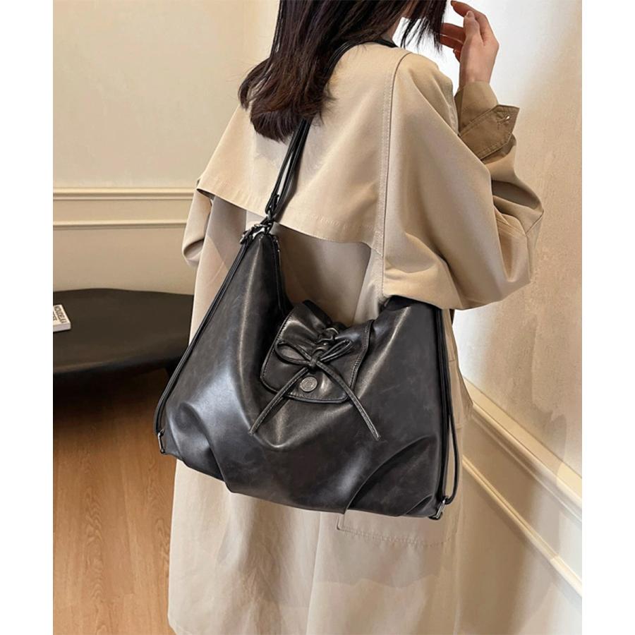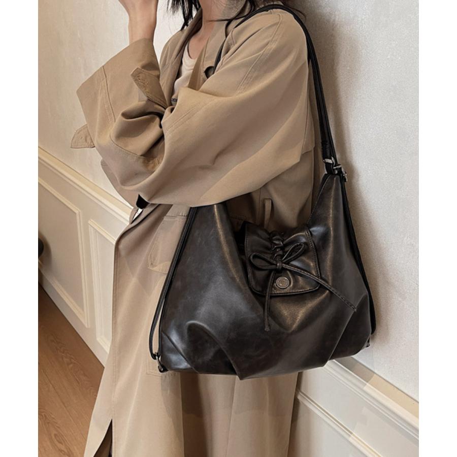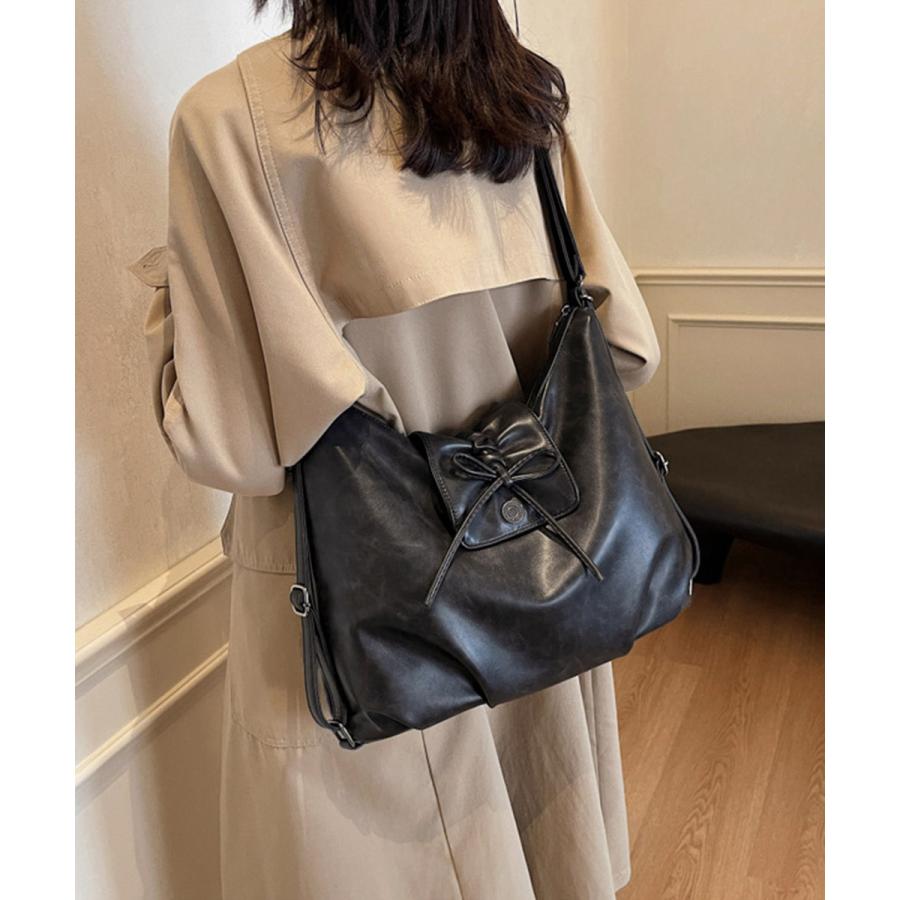 レディース レトロ風 A4トートバッグ カジュアル斜め掛けカバン 大容量 リボンモチーフ 通勤通学バッグ大人可愛い韓国風