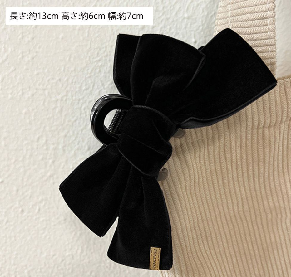 ヘアアクセサリー お洒落 リボン ベルベット シンプル ハーフアップ ヘアクリップ レディース 女性 髪留め おしゃれ 髪飾り 大人気 大人っぽい可愛い 簡単ヘアアレンジ 光沢感のあるベルベットで上品な印象になる韓国風ヘアクリップ 大きめでホールド力抜群 普段使いからちょっとしたフォーマルシーンまで、幅広いシーンで活躍できる 素材:合成樹脂+ポリエステル カラー:ブラック サイズ: 長さ:約13cm 高さ:約6cm 幅:約7cm ※包装に関しての注意点:こちらの商品は激 安で販売しているため、化粧箱は付いていませんが、商品に傷付かないよう簡易包装で発送とさせていただきます。 ※海外輸入品のため、商品の細部仕様は多少異なる場合がございます。予めご了承の上、ご注文お願い致します。