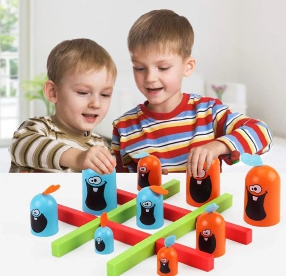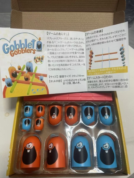 【ゲームのルール】:三目並べのようにおもちゃを3つ並べると勝ち!プレイヤーは、相手の駒をむさぼり食って自分の代わりになることができます。