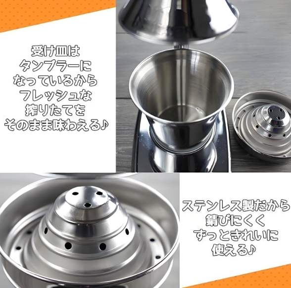 受け皿はタンブラーになっており搾りたてをそのまま楽しめます。