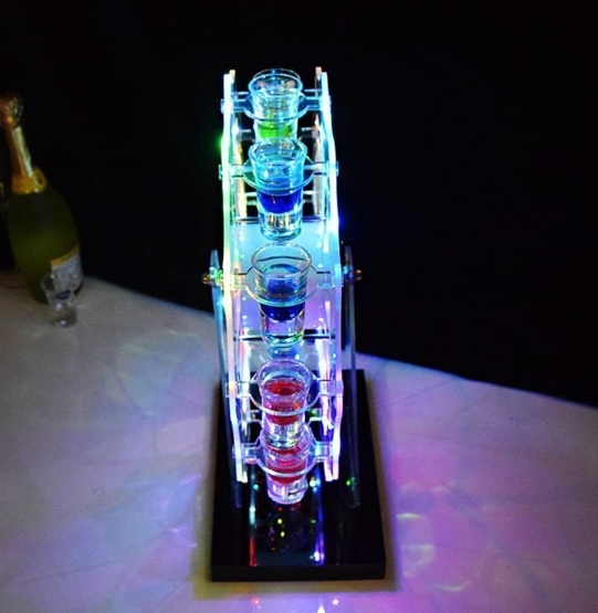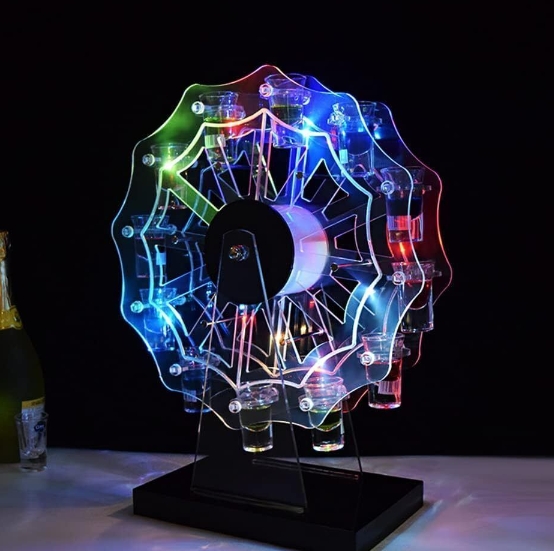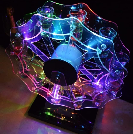 テキーラ観覧車 酒器 雰囲気作り 12穴 LED酒グラス棚 酒ボトルの表示棚 酒カップホルダー 酒グラススタンド 充電式 自動カラーチェンジ レストランの装飾 パーティの装飾品 開店祝い バー ナイトクラブ レストラン クラブ 祝い プレゼント クリスマスの雰囲気 KTVナイトクラブに最適 ワイングラスを含まない (観覧車)
