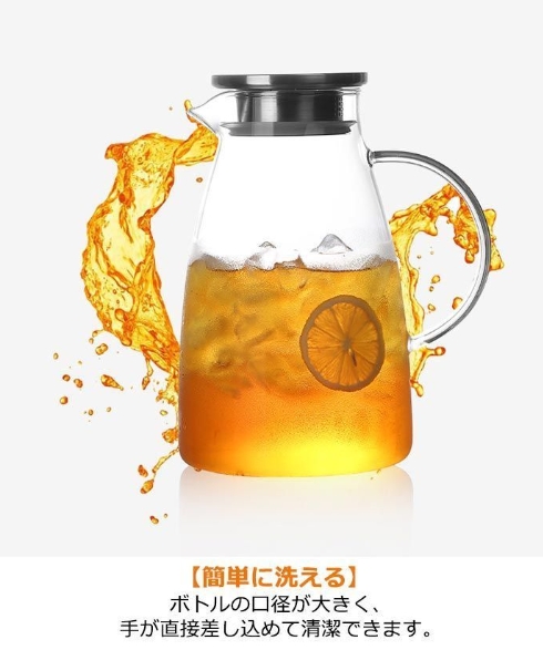 サイズ :1500ml 2000ml サイズについての説明:サイズ:1500ml 2000ml 耐熱温度:?20-150℃ ※サイズ計測には誤差が生じます。 素材:ガラス 色:透明 【直火対応】耐熱のホウケイ酸ガラスで作られて、ビーカーと同じ材質で、直火可能なガラス ポットです。 【簡単に洗える】ボトルの口径が大きく、手が直接差し込めて清潔できます。 【-20℃~150℃対応】麦茶、紅茶、ジュース、コーヒー、ミルクなどの飲み物を淹れたい時にご気楽にお使えいただけます。-20℃~150℃、耐熱ガラスので、温かい飲み物にも冷たい飲み物にも使える耐熱ガラス製のピッチャーです。