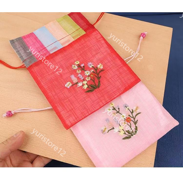 可愛い刺繍を使った飽きのこないデザインで、いつまでも使えるポジャギ柄のポーチです。