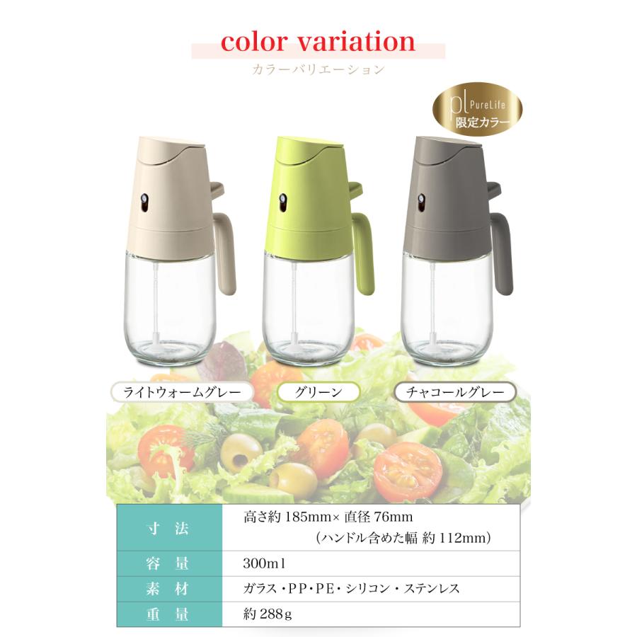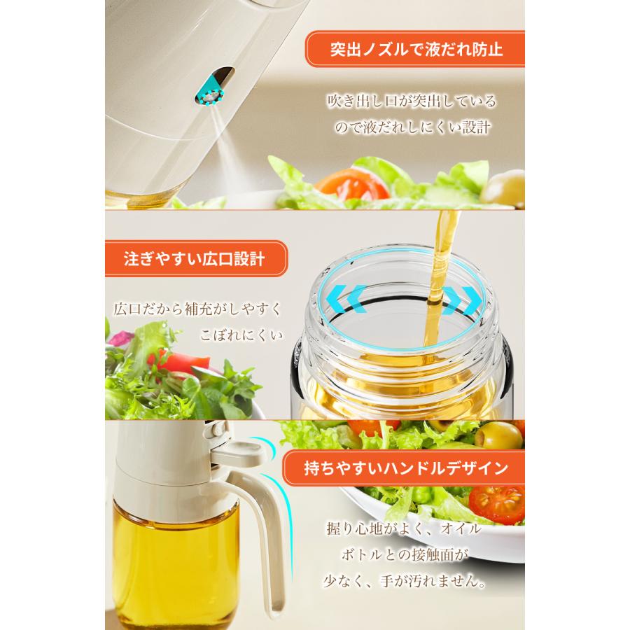 商品:スプレー式オイルボトル キッチン用品 ガラスボトル 話題の商品 人気商品 2WAYボトル 調理グッズ ステンレス製ノズル
