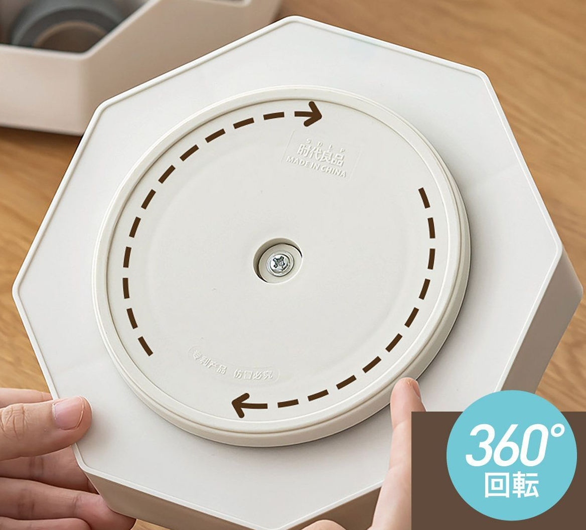 60度回転 ペンスタンド 文房具をひとまとめに収納! 360°回転するので、使い勝手抜群! サイズ:17.8×17.8×13cm 材質:PP<br>重量:約300g