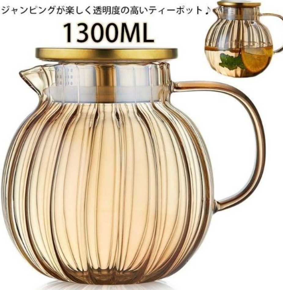 サイズ :F サイズについての説明:F 容量1300ml 底径約12.5cm 高さ約15cm 素材:ガラス 色:写真色 ジャンピングが楽しく透明度の高いティーポット♪ 耐熱ガラスで作られて、直火にも対応可能!電気陶炉もおすすめです。