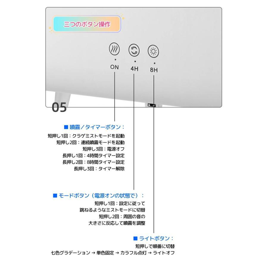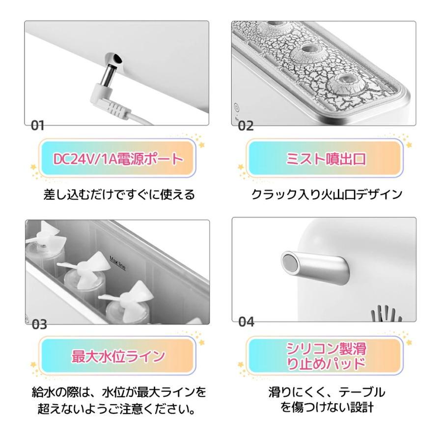 商品仕様■製品サイズ:261×84×119mm■重さ:590g■加湿量:20-60ML/h■タンク容量:300mL■電源:DC24V/650mA■定格消費電力:14W